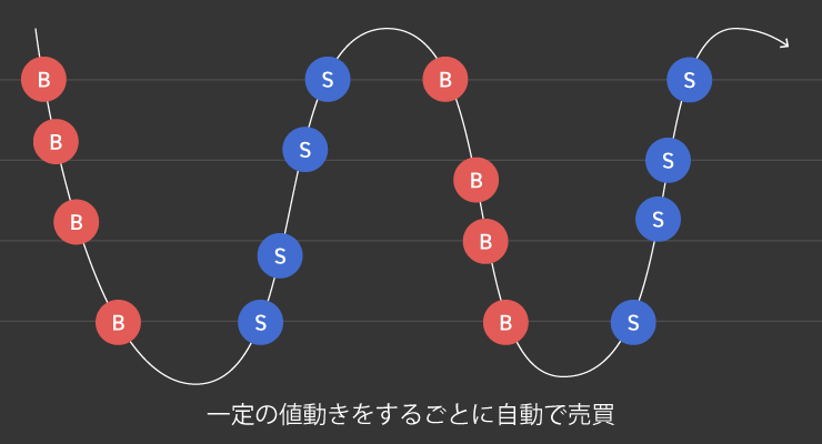 自動売買とは、あらかじめ決めたルールに従って、システムがあなたに代わって24時間取引を行ってくれる仕組みのこと。投資のプロが考えた戦略や、AIによる高度な分析を、ボタン一つで利用でき、経験者から初心者まで幅広い方にご利用いただける投資手法の一つです。