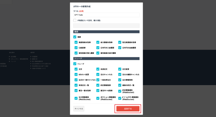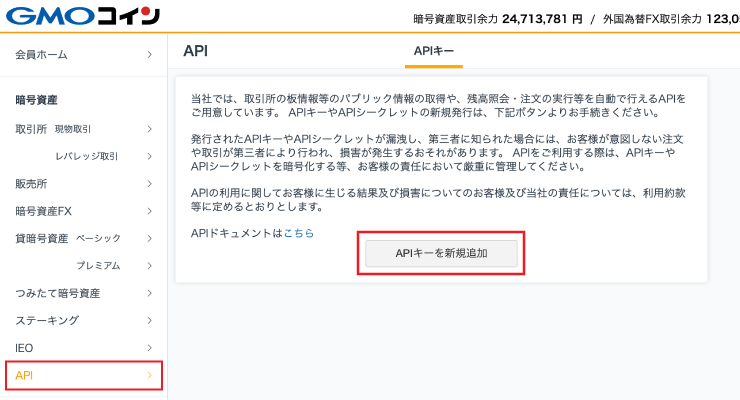 外国為替FXも同様の手順でAPIキーとAPIシークレットの作成いただけます。