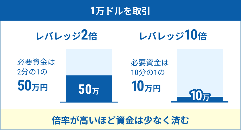 つまり、1万ドルの取引をするのに50万円あれば良いわけです。
