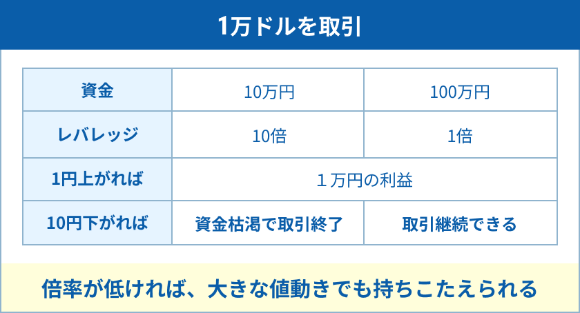 レバレッジにより持ちこたえられる値動きが違う